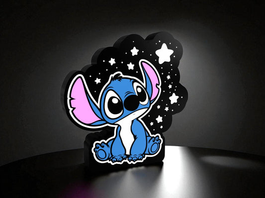 Fan Art Φωτιστικό Stitch & Αστέρια – Ονειρικό 3D Printed Lightbox