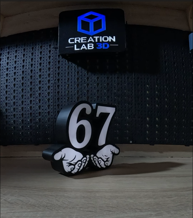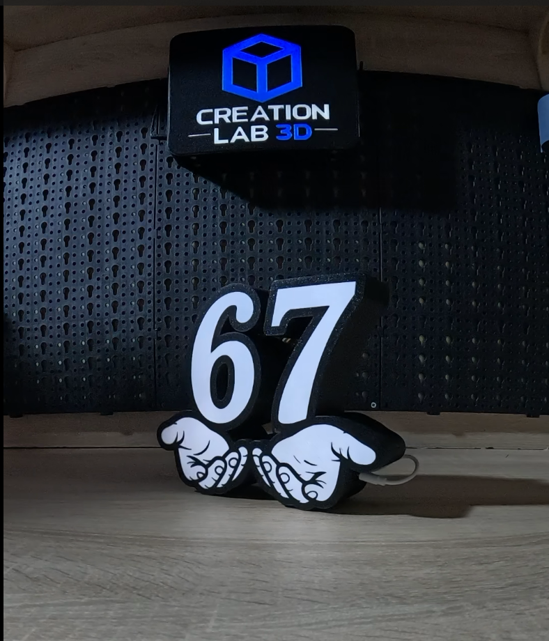 Ο φωτισμός της δημιουργεί καθαρό, ατμοσφαιρικό αποτέλεσμα, ενώ το design με τα χέρια και τον αριθμό 67 αποτυπώνει το vibe της νέας γενιάς: αυθεντικότητα, ελευθερία έκφρασης και λίγο “δεν με νοιάζει”.