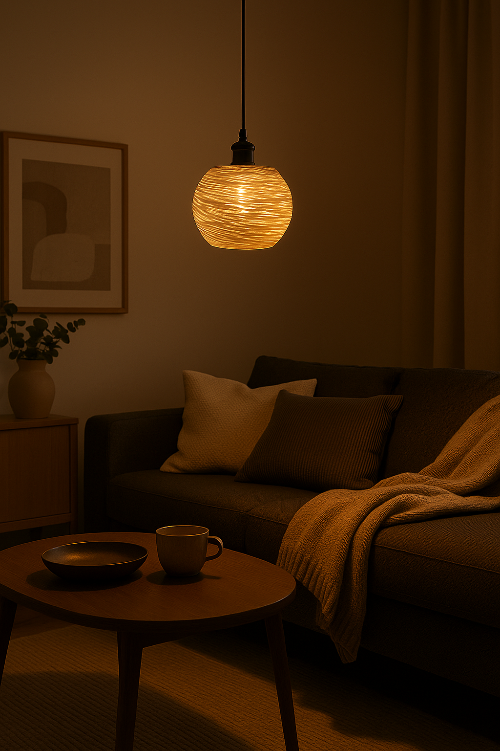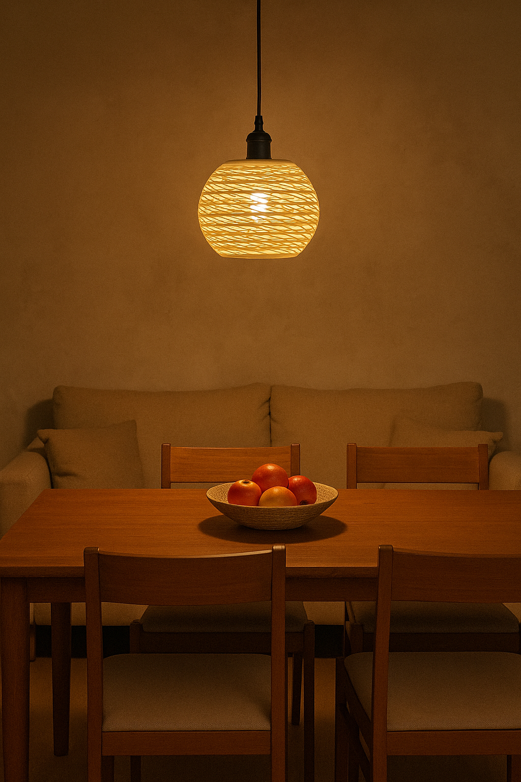 Κατασκευασμένο με τεχνολογία 3D printing από PLA, ένα οικολογικό και ελαφρύ υλικό, προσφέρει υψηλή αντοχή και φυσική υφή. Ιδανικό για τραπεζαρίες, σαλόνια ή υπνοδωμάτια, προσδίδοντας αίσθηση ζεστασιάς και minimal αισθητικής.