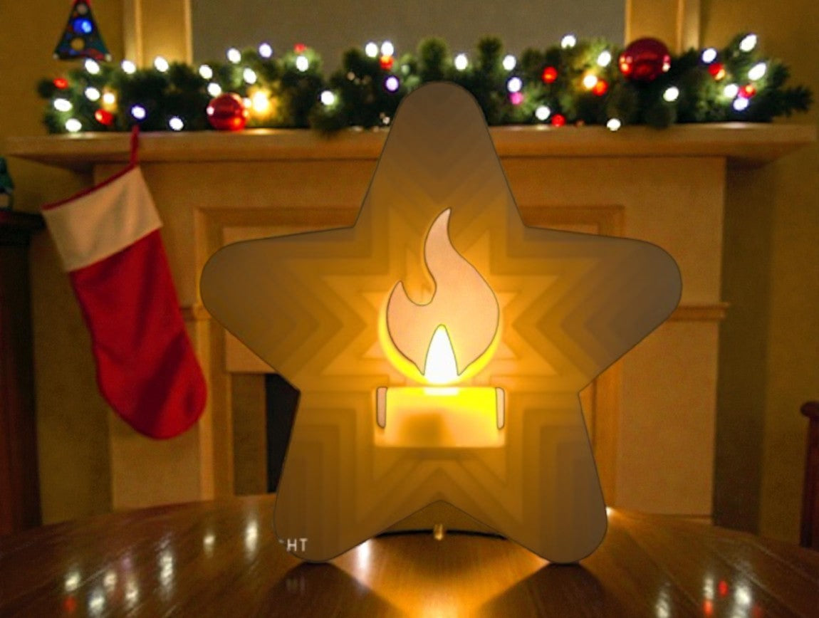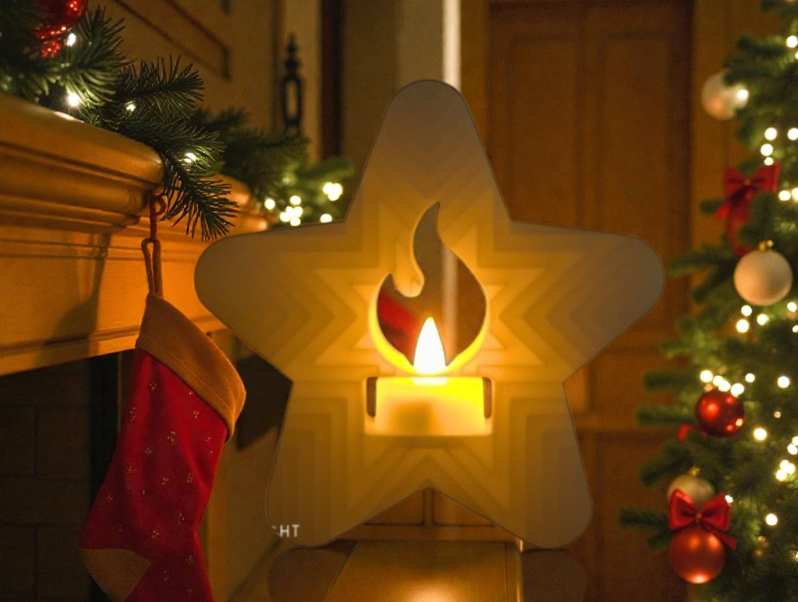 Το ιδιαίτερο μοτίβο της φλόγας στο κέντρο δημιουργεί ένα εντυπωσιακό παιχνίδι σκιών που θυμίζει τζάκι, προσθέτοντας θαλπωρή στις γιορτινές βραδιές.