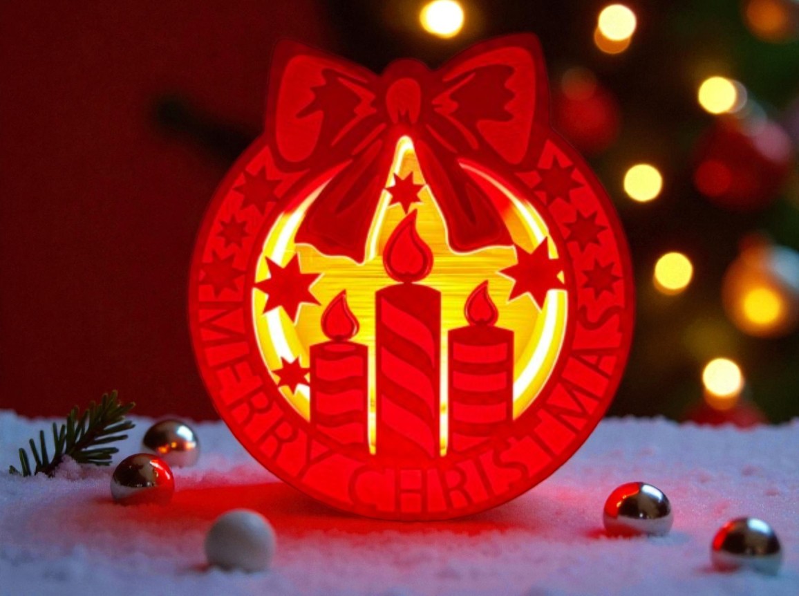Επιτραπέζιο Lightbox “Χριστουγεννιάτικα Κεράκια & Αστέρι” | Festive LED Table Lamp