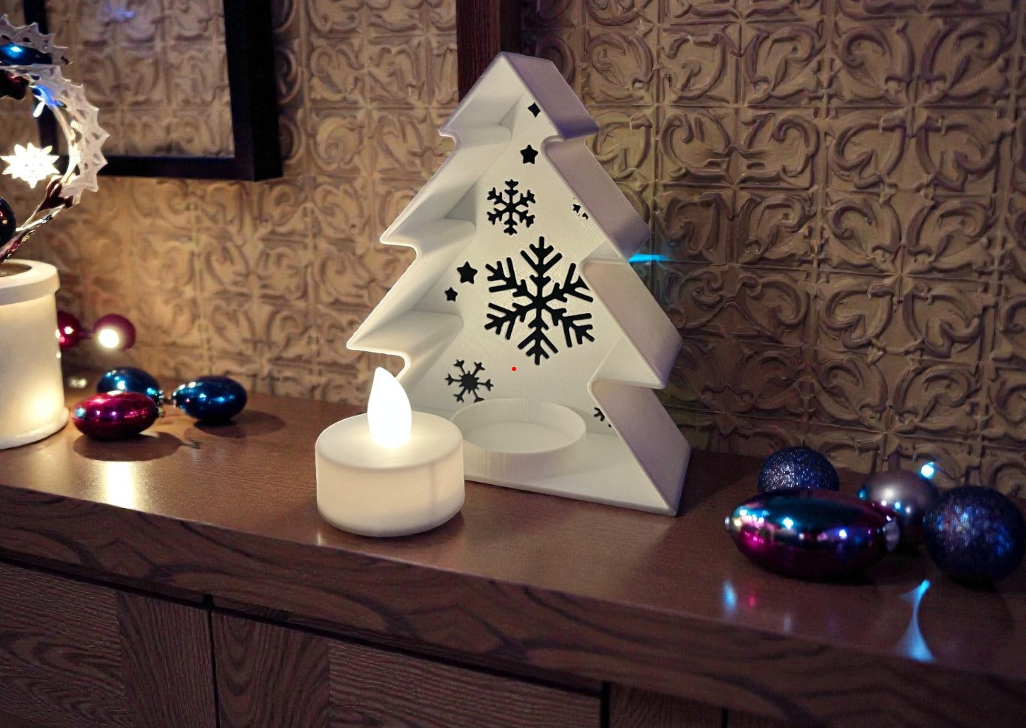 Κατασκευασμένο από PLA, ένα ανθεκτικό και ποιοτικό υλικό, το κηροπήγιο έχει διαστάσεις 95 × 111 × 43 mm, ιδανικές για ράφι, τραπέζι, τζάκι ή γωνιά διακόσμησης. Το ζεστό φως του ρεσώ δημιουργεί ατμόσφαιρα χαλάρωσης και γιορτινής θαλπωρής, μετατρέποντας κάθε χώρο σε μικρό χριστουγεννιάτικο καταφύγιο.